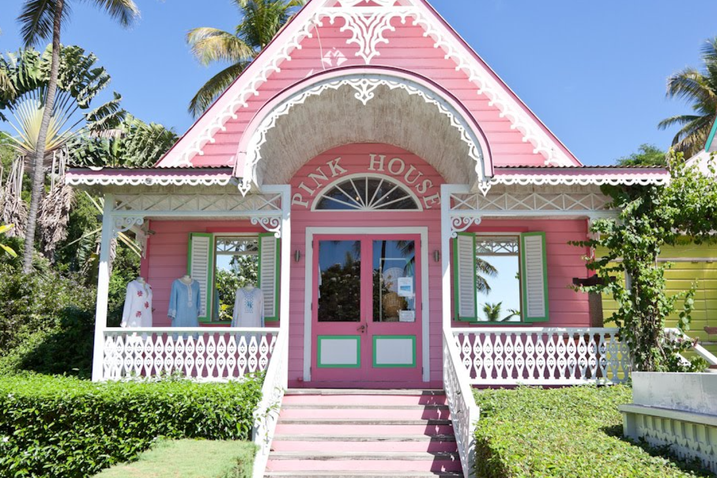 Kindness and encouragement from influential friends in the fashion business helped to build Lotty’s confidence and in 2008, when the little gingerbread shop came up for rent she took the plunge. She called it "Pink House" obviously! It is a beautiful and iconic island treasure and, along with Basil's Bar, must be the most photographed building on Mustique.