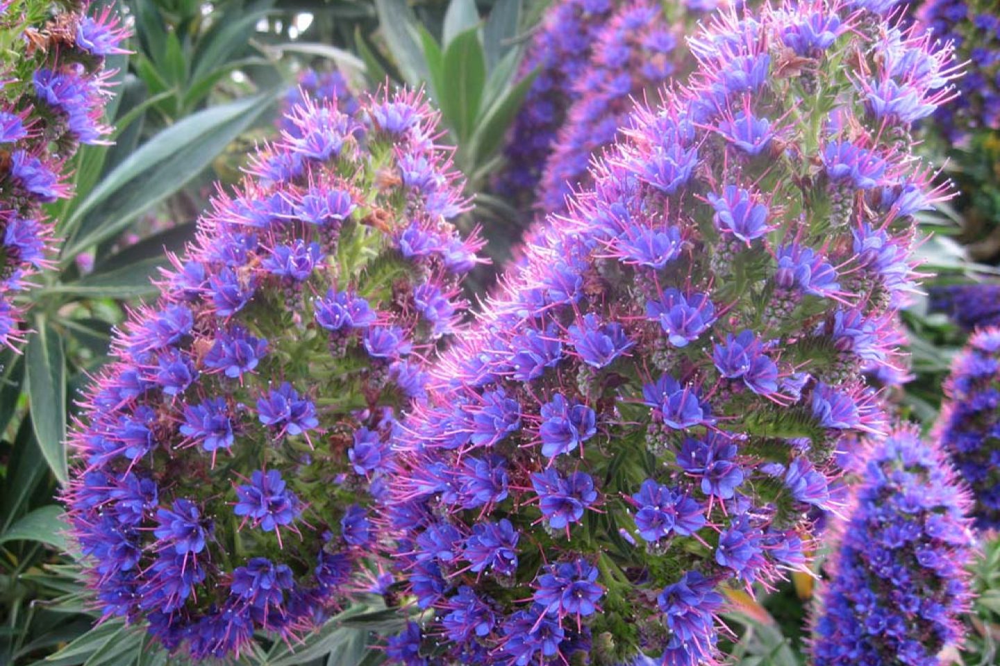 Echium pininiana the single-stemmed type can grow up to twenty-foot tall in just eighteen months and will produce a spectacular blue flower spike that will tower above any shrubs that happen to be loitering nearby.