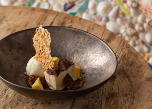 As you arrive at The Ruin, the scent of woodsmoke curling from the kitchen chimney greets you, rich with the promise of flame-cooked dishes, fuelled by island-grown wood.