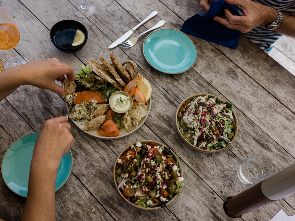 Cross the island to the Ruin Beach Café and tuck into a fresh salad or sharing plate – the seafood sharer is deliciously indulgent.