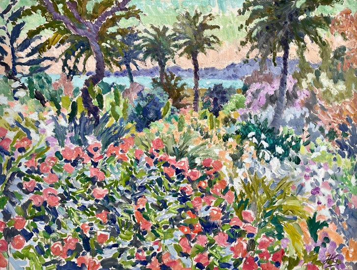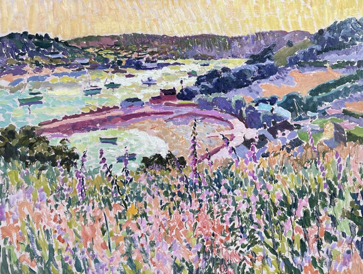 Hugo first came to Tresco in 1997 to paint a double portrait of Robert and Lucy Dorrien-Smith, and was so enchanted by the island that he returned to paint the landscape the following summer. He continued to find great inspiration in the heightened sense of light and colour which characterise Scilly at all times of year. He returned this May for the first time in a decade and has been beguiled all over again by its enchanting ways.
