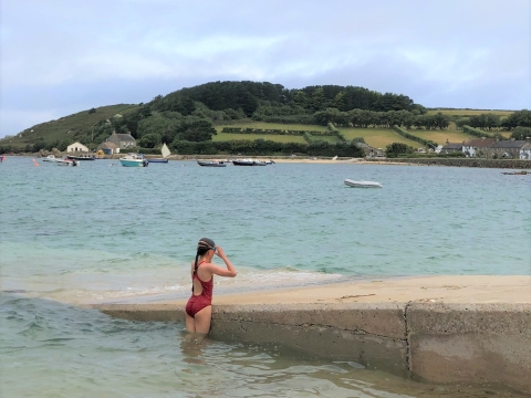 Islander Wiktoria is braving the sea everyday in August; come wind, rain or summer storm, nothing is going to stop her from taking a dip for charity