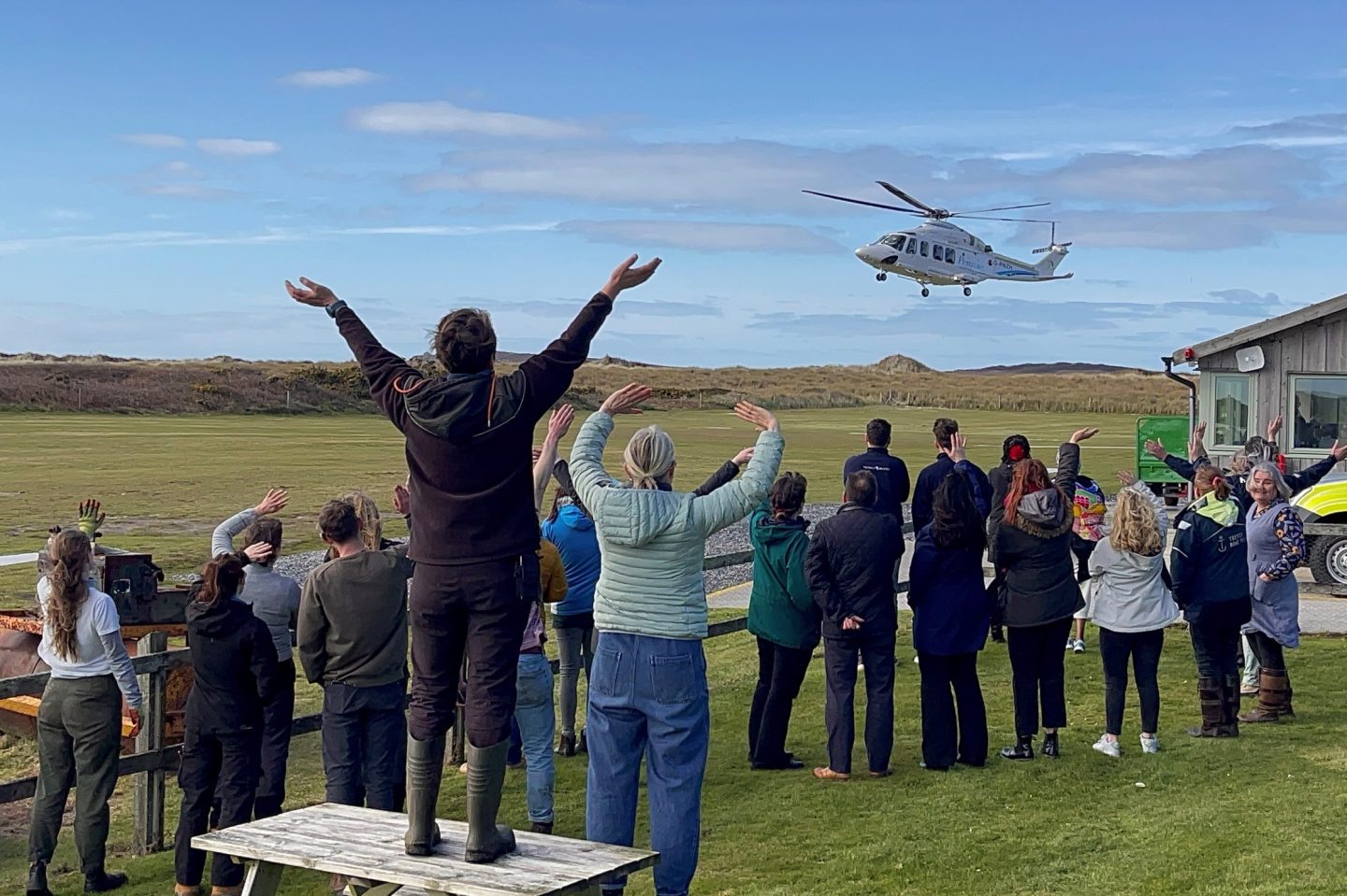 A gaggle of islanders made their way to Tresco Heliport, and as the flight time grew nearer, more kept arriving from all corners of the Abbey Garden and beyond. Cue a typical Mike quip: "I've told Robert Dorrien-Smith there's absolutely no work taking place on the island because you're all up here waving. He's going to send me the bill!"