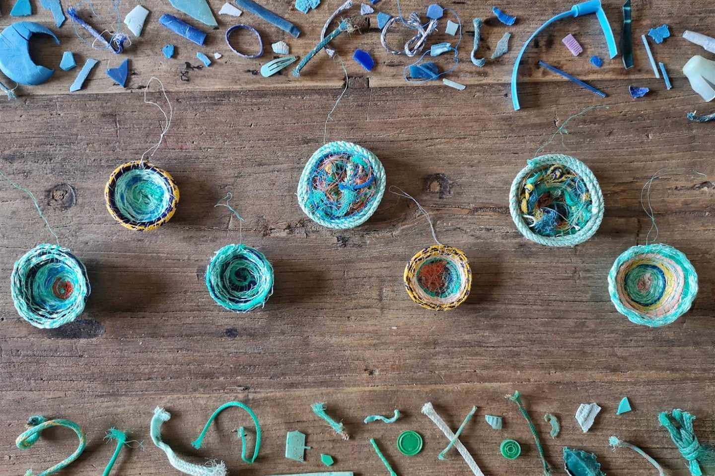 As well as beautiful baubles made from beach-cleaned fishing rope, Emma makes woven bowls, coasters, and an array of artwork all made from marine plastics and beach debris salvaged from Tresco’s coastline.