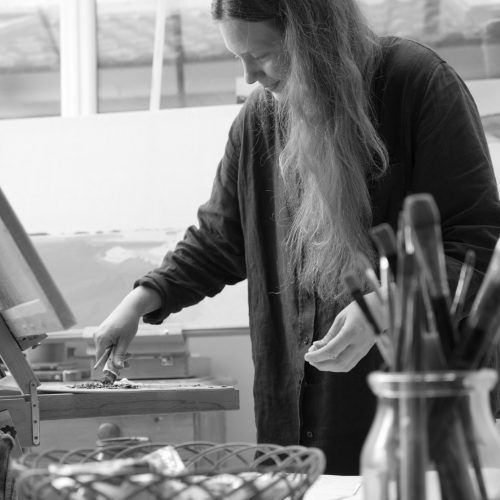 Eleanor Dorrien-Smith worked as a fashion and textile designer for over a decade and her creative work has continually been inspired by the Isles of Scilly. Building on her love of drawing and colour, in 2021 Eleanor held her first exhibition of a collection of charcoal drawings and has been painting and exhibiting ever since