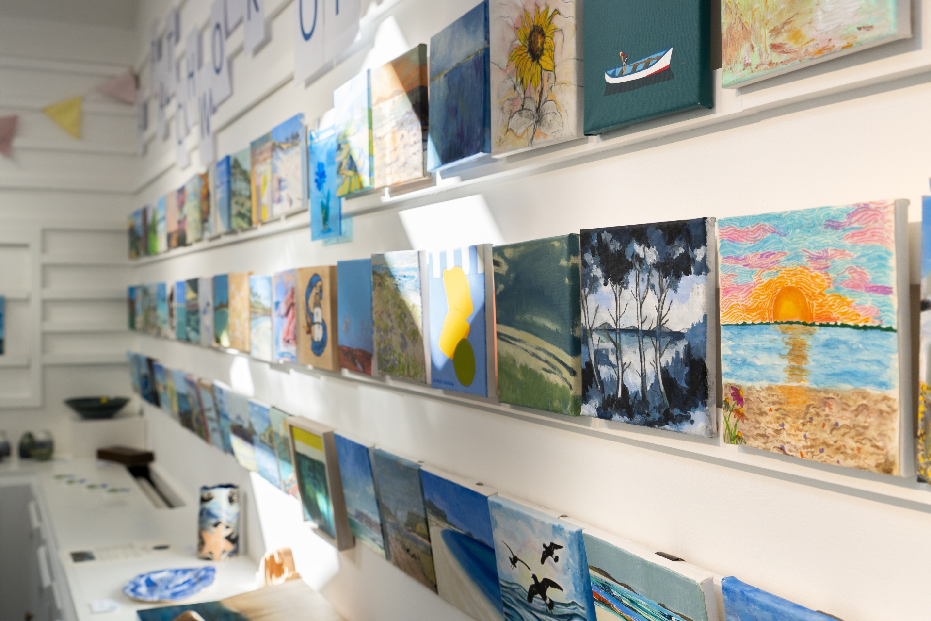 The premise? Tresco locals, school children, islanders from across Scilly, and professional artists with links to the islands all get given a blank 20cm x 20cm canvas. From there, they paint whatever comes to mind when Scilly is mentioned. Whether that's white beaches, boats and buoys, blue seas or puffins, the sky is the limit.