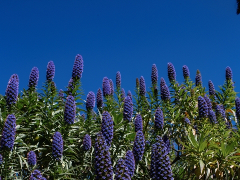 "Crocus, Lavender, Viper's Bugloss, Sedum, Echium, Honeysuckle, Mahonia, Rosemary, Thyme, Borage, Oregano, Chives and onions are all examples of species that give the bees a helping hand and many of which are here on Tresco. In fact, our honey has traces of many of these plants, along with Heather and cabbage flowers from the Abbey market garden, not forgetting the Protea, aeonium and Eucalyptus." Jilly Halliday