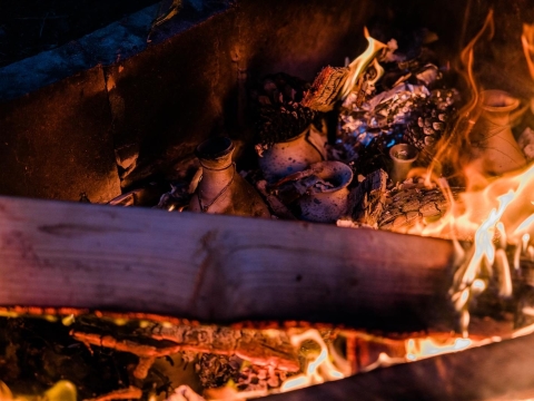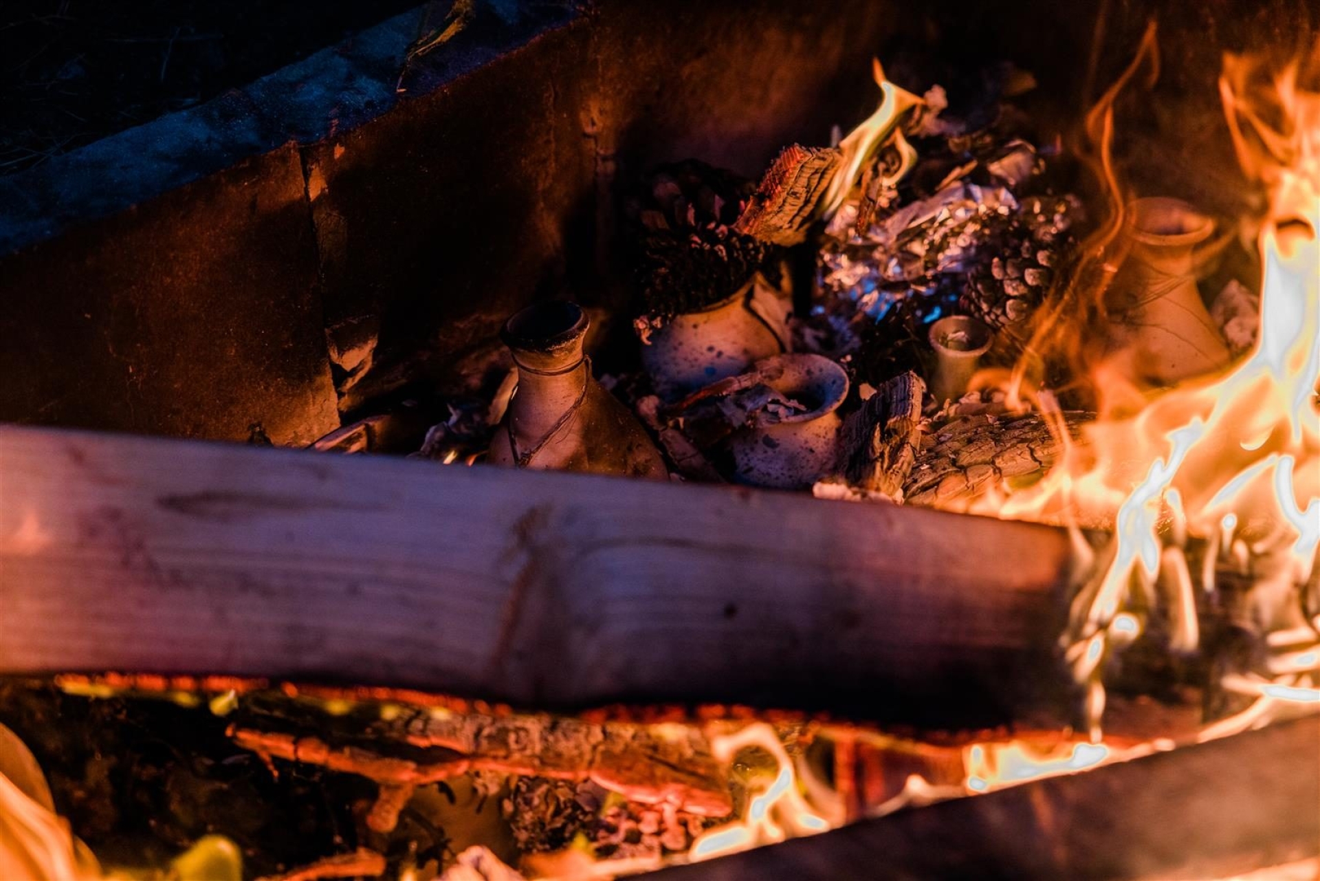 When it comes to her creative work, her sense of fun is evident. She has a kiln, but also works with a fire pit, replicating a traditional form of pottery that’s been dated back to around 3,500 BC. It’s a process that’s not without its quirks, however.