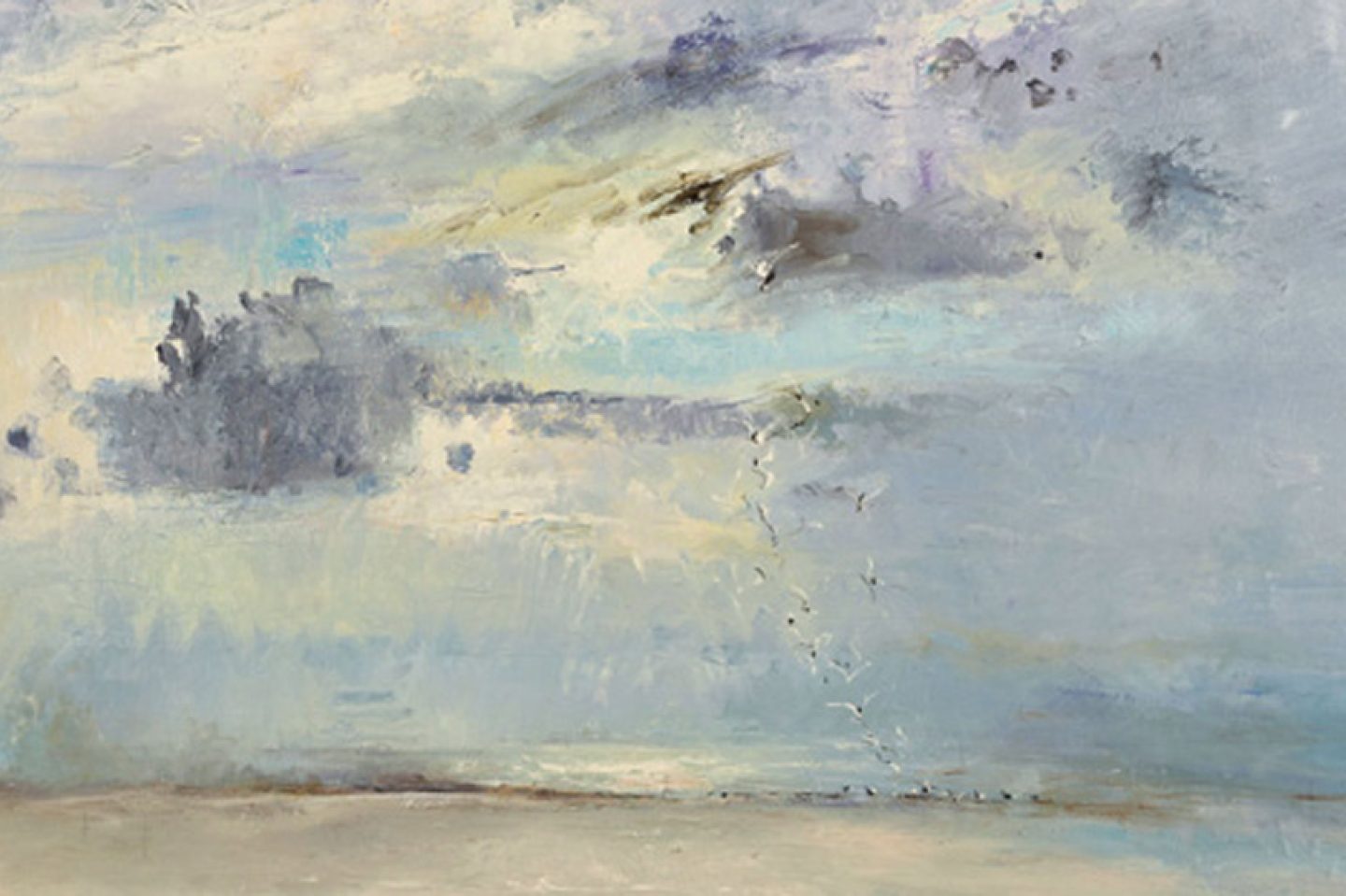 I begin the painting process on location gathering ideas. The empty beaches and vast skies of Tresco are a formative influence. The cityscapes of London, Cambridge and Venice are another source of inspiration, centring around water and focusing on the effects of light on atmospheric rivers and the sharp angular contrast of buildings. I have recently been exploring the wide vistas of the Fens. The area has the same powerful atmosphere and sense of isolation as Tresco. I haven’t explored that enough yet – the endless variations of land and sky.