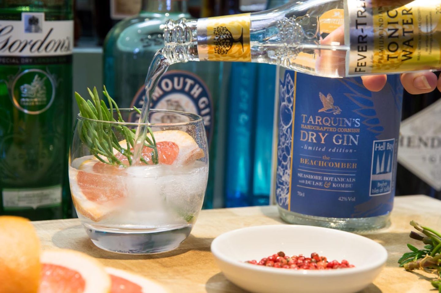 After a good deal of taste testing, we are pleased to be able to highly recommend Tarquin's Hell Bay Gin served simply with plenty of ice, Fever Tree tonic, a pink grapefruit slice and a sprig of fresh samphire. Pink peppercorns add an extra hint of spice.