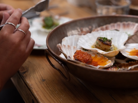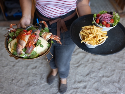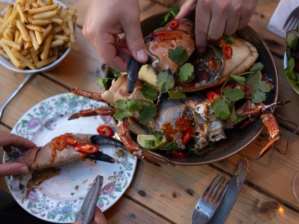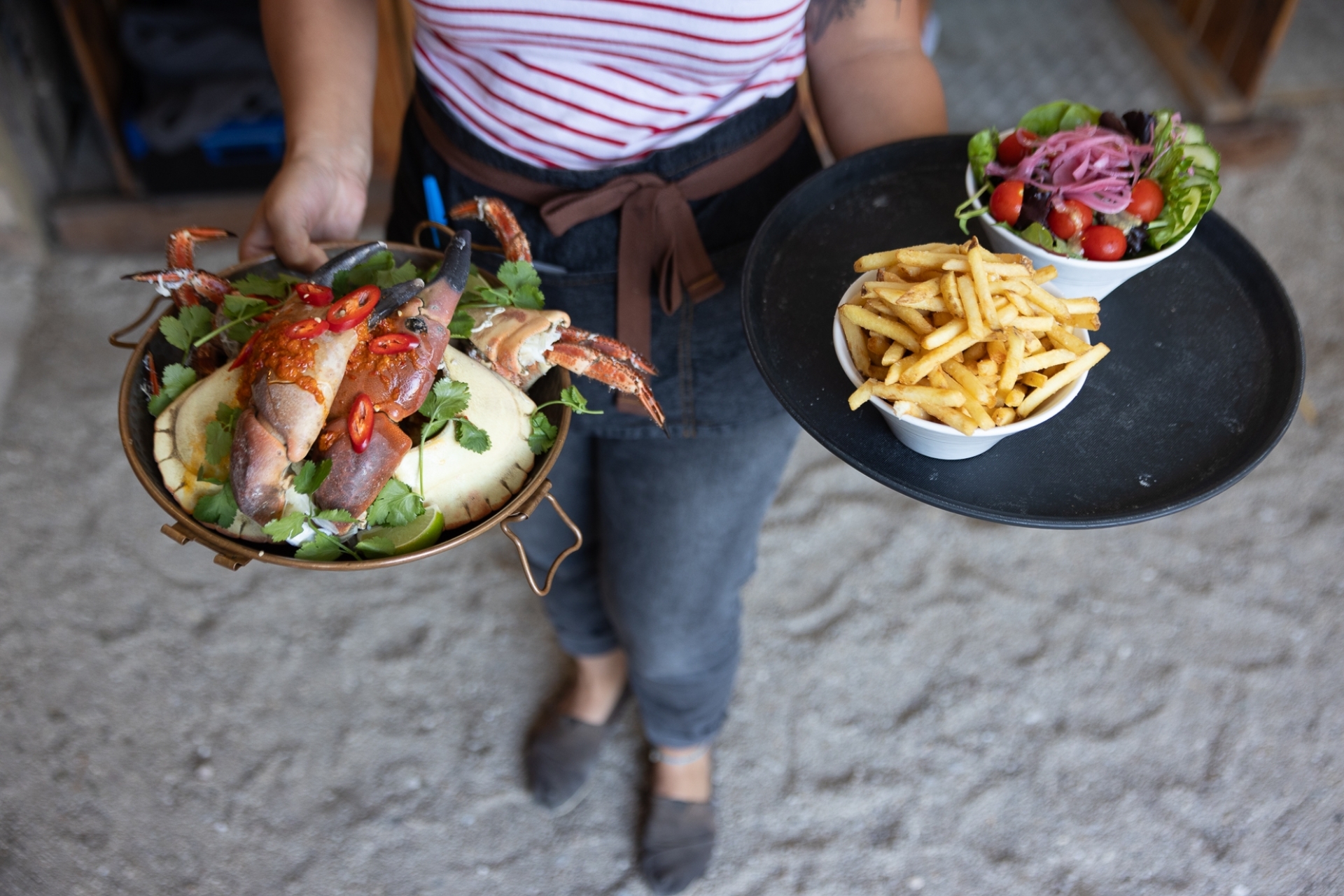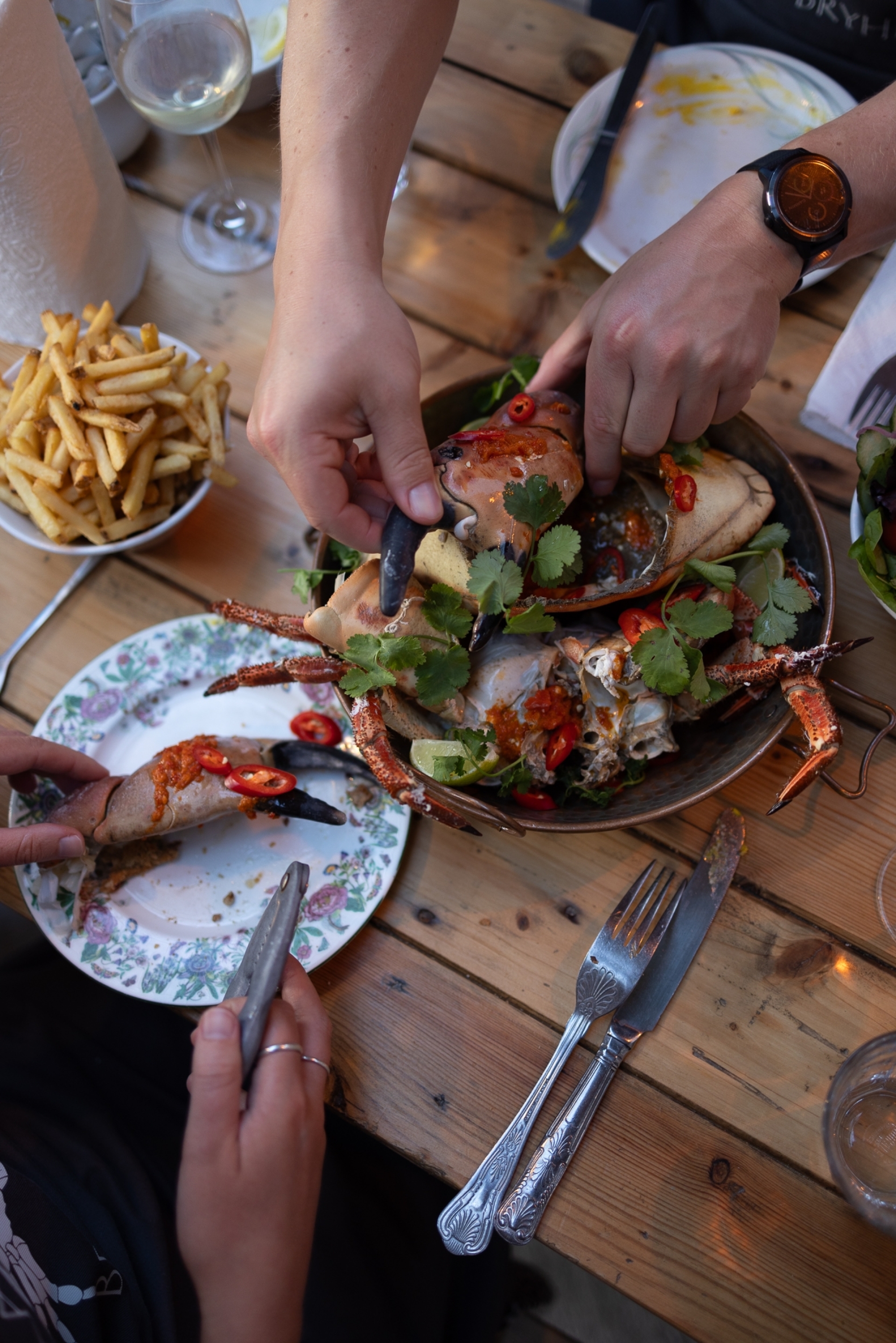 The Crab Shack team are on hand to help you pick your crab and get to the meat inside the claws and body. 'Don't be afraid to get stuck in!' is the general attitude; there is more meat than you realise. Chips dipped in brown crab meat is a Bryher delicacy (or you can save the butter from your scallops as a dipping sauce too...)