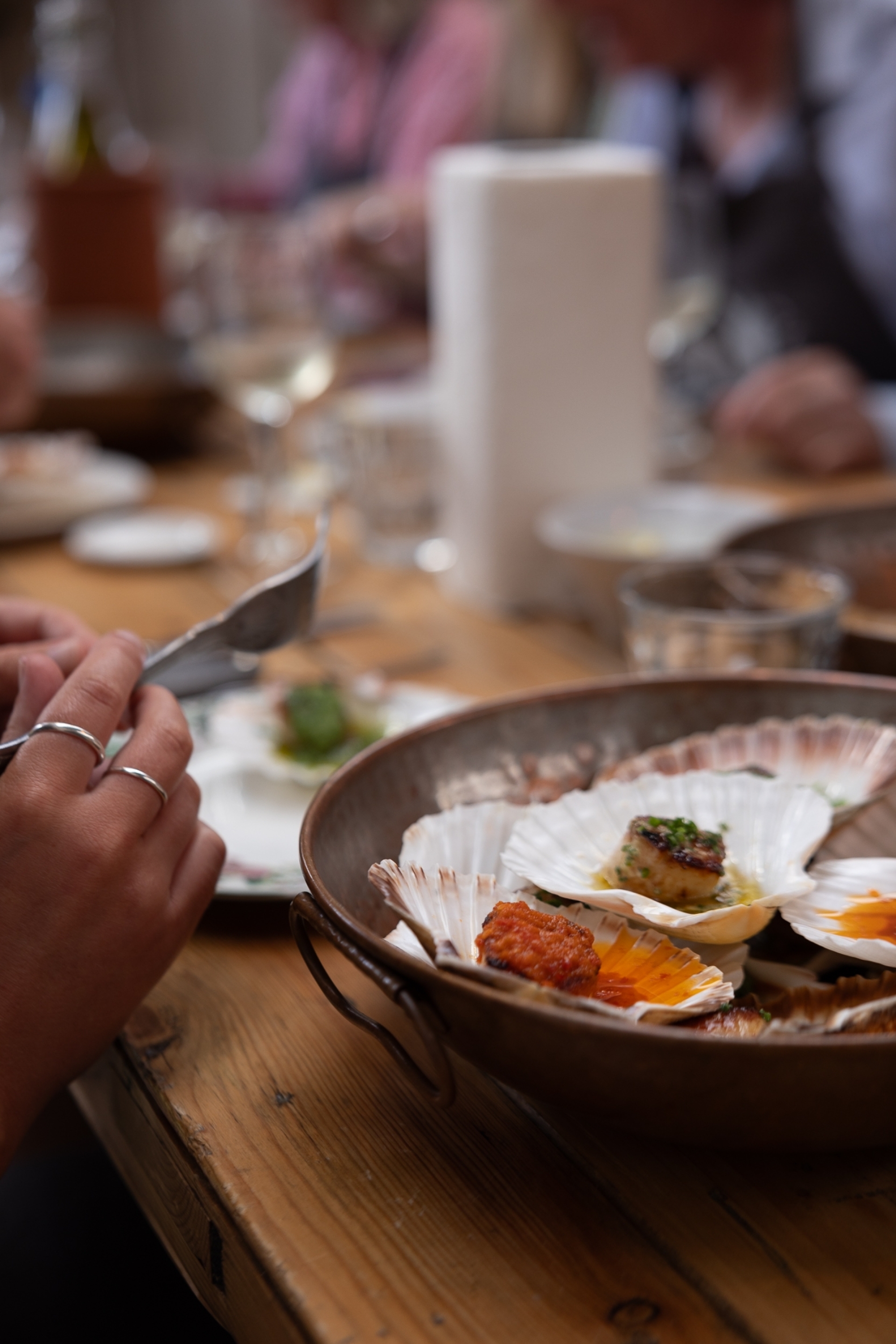Everything you need is written on a blackboard and it is simple, hearty and delicious. Scallops to start and they're smothered in butter and delivered in shells. Then comes Bryher crab of various sizes. From medium to monster, caught by the Pender family that day, they are as fresh as it gets.