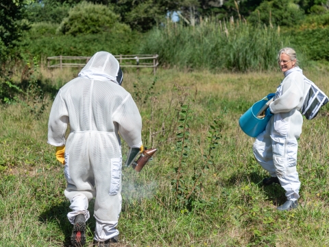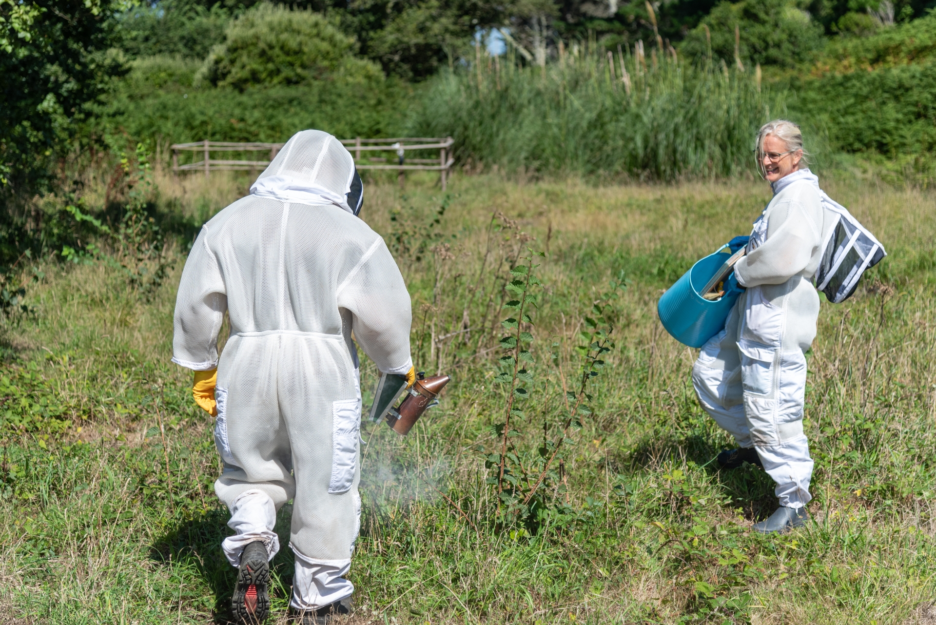 Beekeeping is an artform and each keeper differs from the next. As this is the project of two different beekeepers, the care of the hive will be a balance of their methods. Although it will be resident beekeeper Jilly Halliday who tends to the colony on Tresco, she and Andrew will always consider Mike Hicks as donator of the colony, and the ways he would like the bees to be cared for. Such is the beauty of partnership and collaboration.
