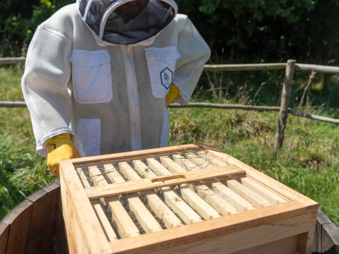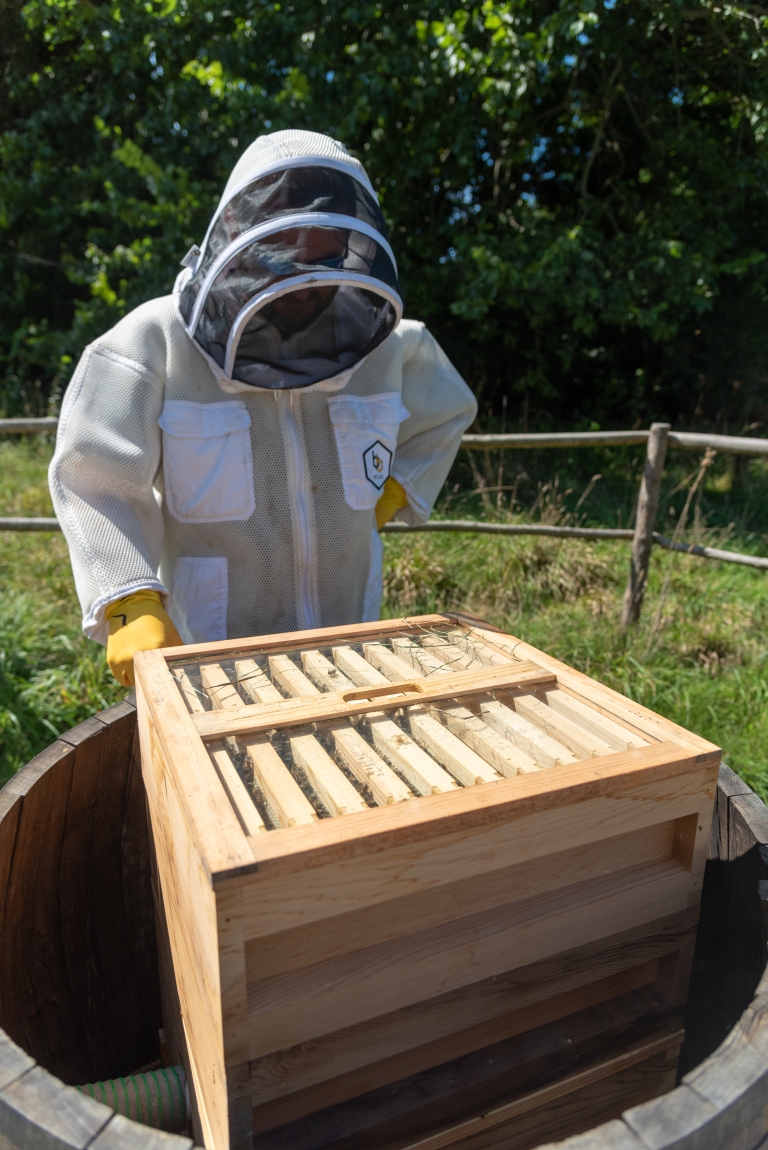 A St Martin's rum barrel kitted out to make the perfect bee hive