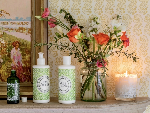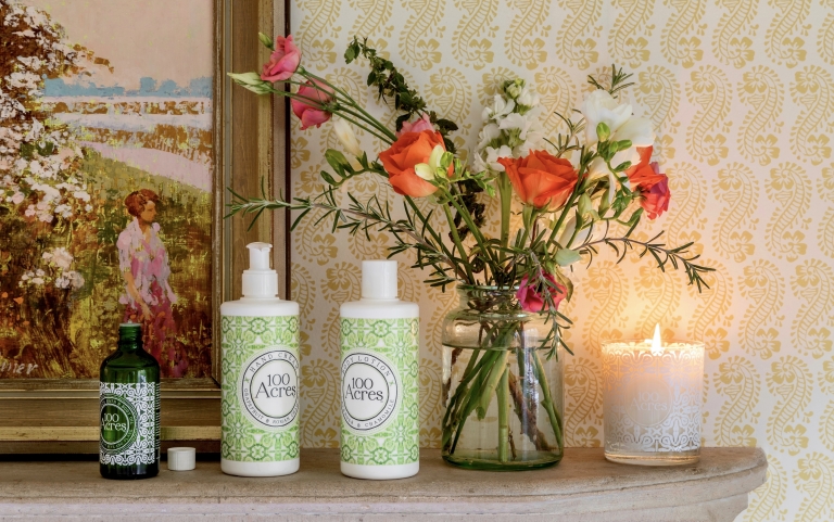 We’re all about bottling the beautiful herbs, flowers and fruits of the British Isles. That’s where the name 100 Acres comes from! Our products are a bottled incarnation of the incredible botanical beauty that we have in Great Britain – think rolling green meadows, gorgeous walled gardens, sprawling wild herb bushes, rows of fragrant lavender and scented roses…