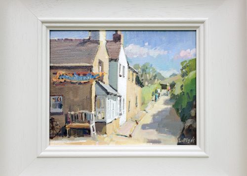 Donated by Dean Whillis, this framed 24 x 18cm original (framed size 39 x 34cm) captures one of Tresco’s most enchanting views, heading up Townshill past our iconic island inn. Rooted in a tradition of plein air painting, Lizzie’s work follows the changing patterns of the day, season and weather scape.