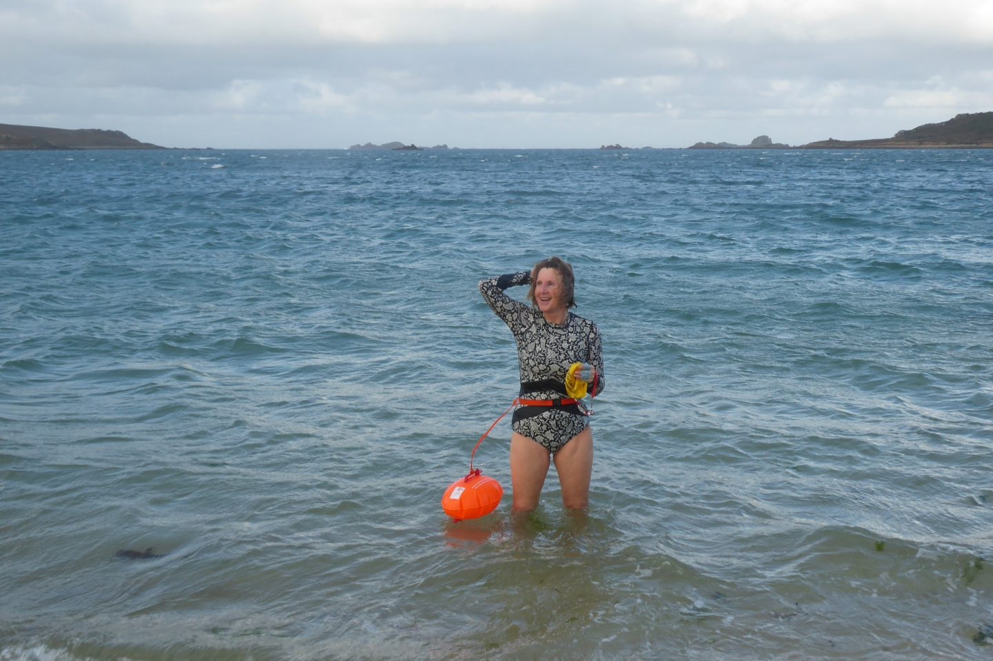 I tend not to swim on the more ‘populated’ beaches – for example I avoid New Grimsby beach as there are usually lots of boats around. If I’m ever in doubt e.g. if it’s a little choppy, if I’m swimming further or if I turn up somewhere and there is boat traffic nearby, I use a tow-float to ensure I stay visible.