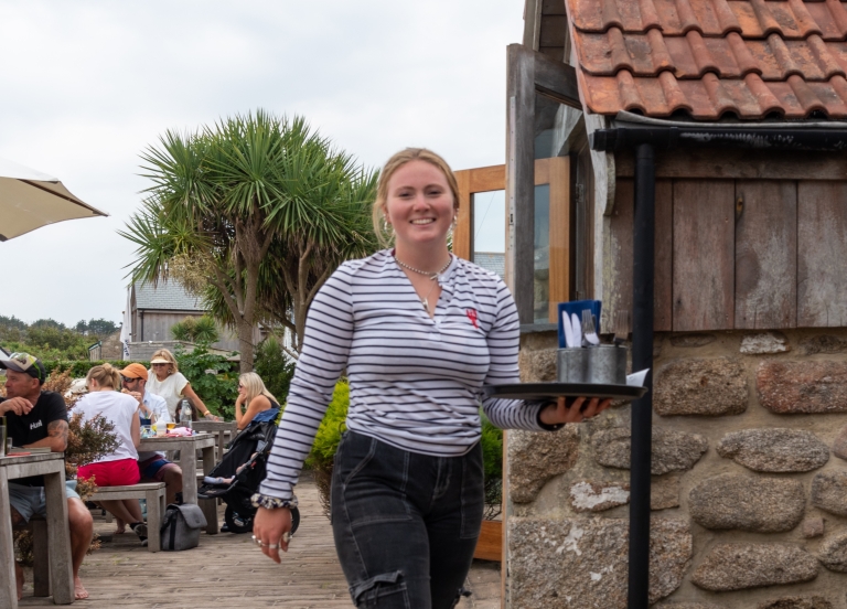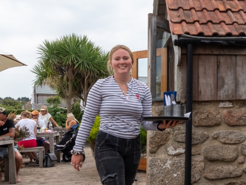 One person who is always willing to muck in is Jess. Originally hired to work in Tresco stores in 2021, she fell in love with the lifestyle and has stayed here ever since - even throughout the winter months too! This season you could find her in the Ruin Beach Cafe greeting, seating and taking care of the many diners who flock there for delicious pizza, fresh salad and a cocktail.