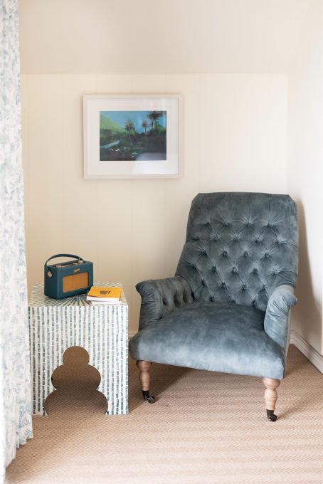 On entering via a spacious oak-floored corridor, it’s impossible not to be drawn straight through the property to its patio doors and mesmerising sea views beyond. Downstairs are an interconnected dining space, modern kitchen, and a lounge full of sunlight. Upstairs three bedrooms pop with colour, and the master enjoys its own balcony built into the sloping roof of the house.