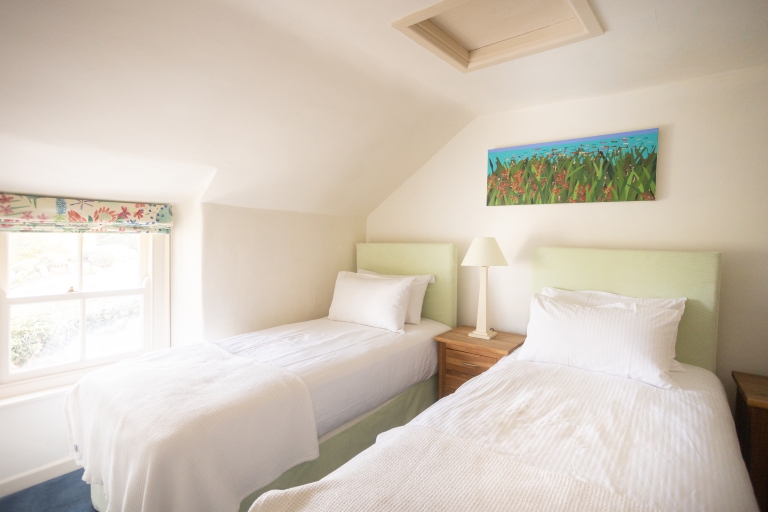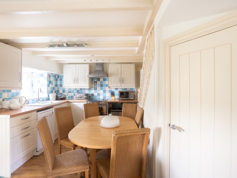Low ceilings and an exposed granite wall create an unmistakeably homely feel as soon as you enter the property – sink into the enveloping corner sofa and stoke up the fire to ward off rainy days. When the sun’s out, bask in the lawned garden – encircled by hedgerows sprinkled with colourful flowers, this private space begs for barbecues.