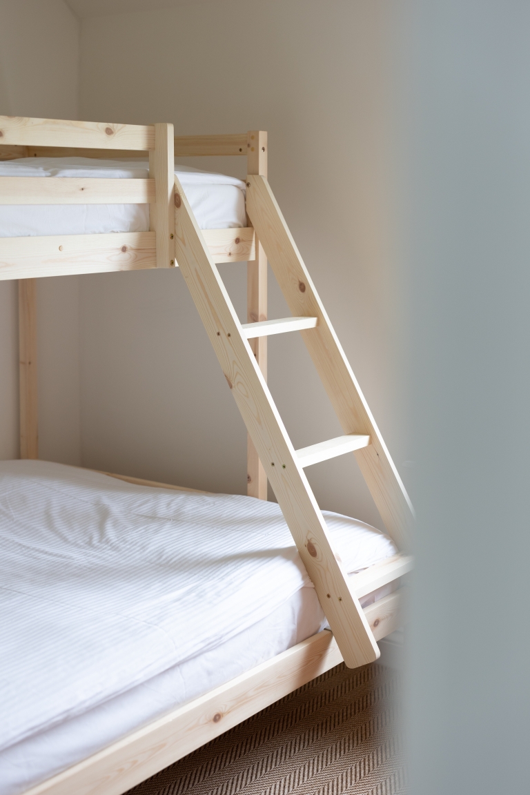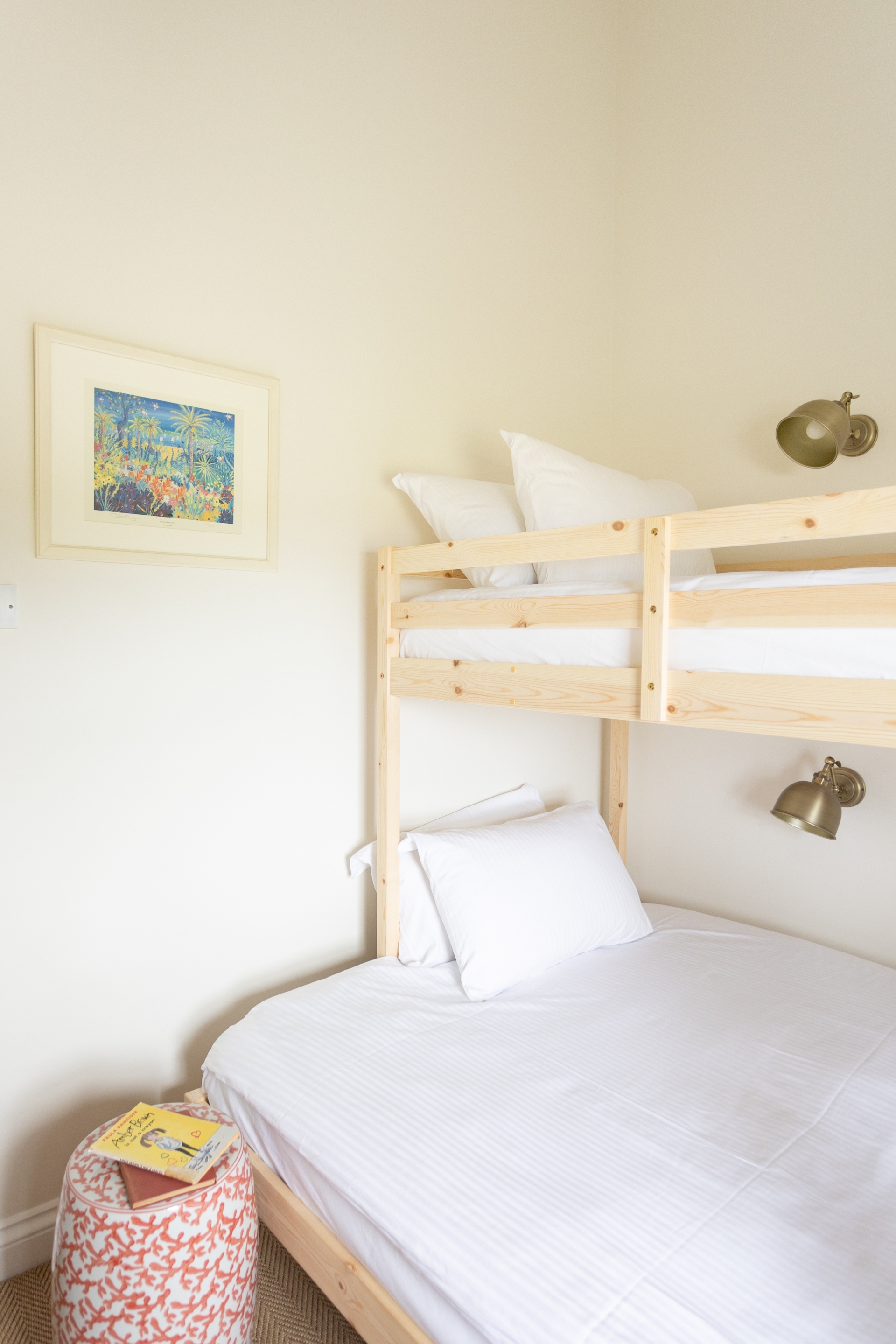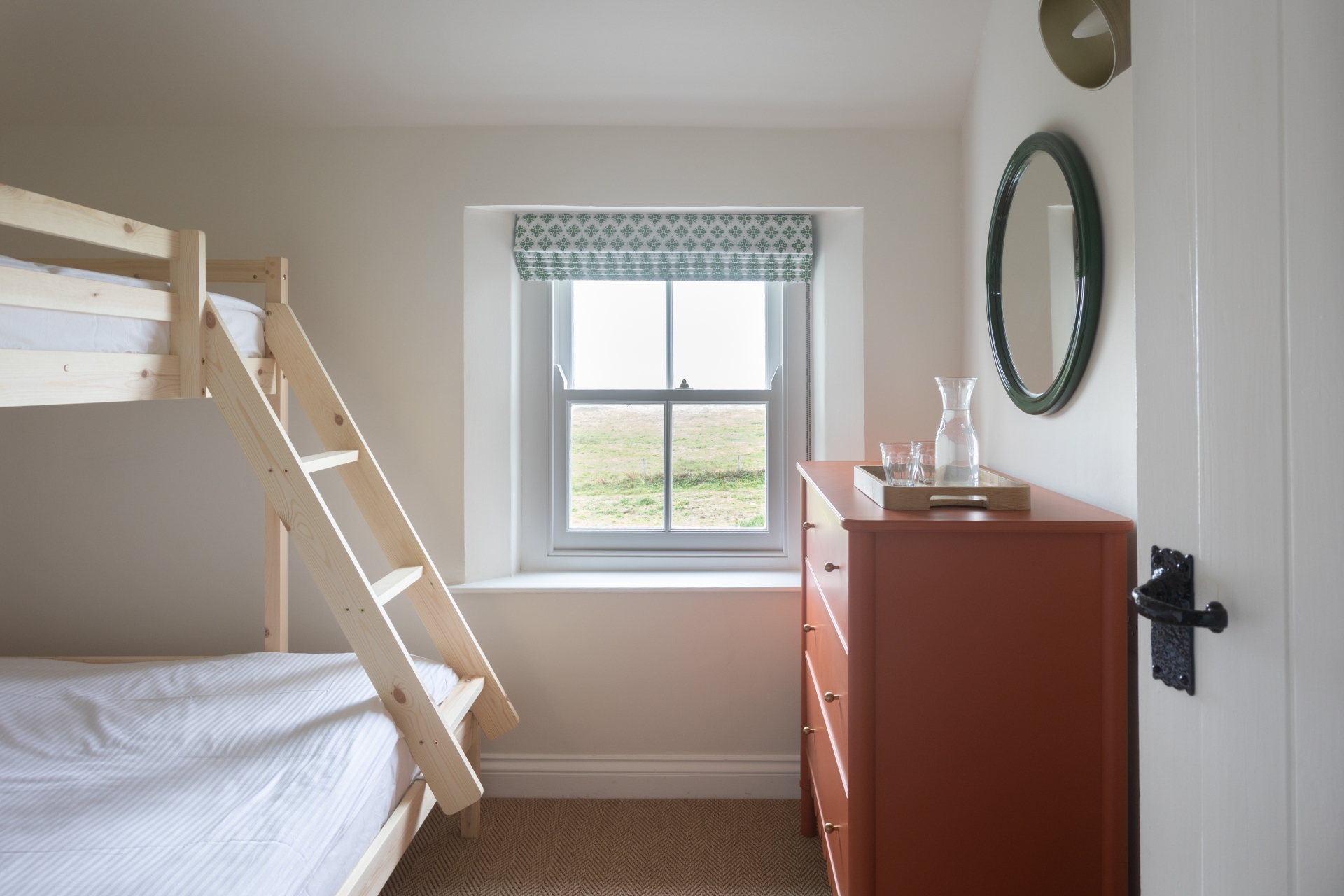The cottage has four bedrooms, including a bunk room, and its open-plan living space is sociable and welcoming.