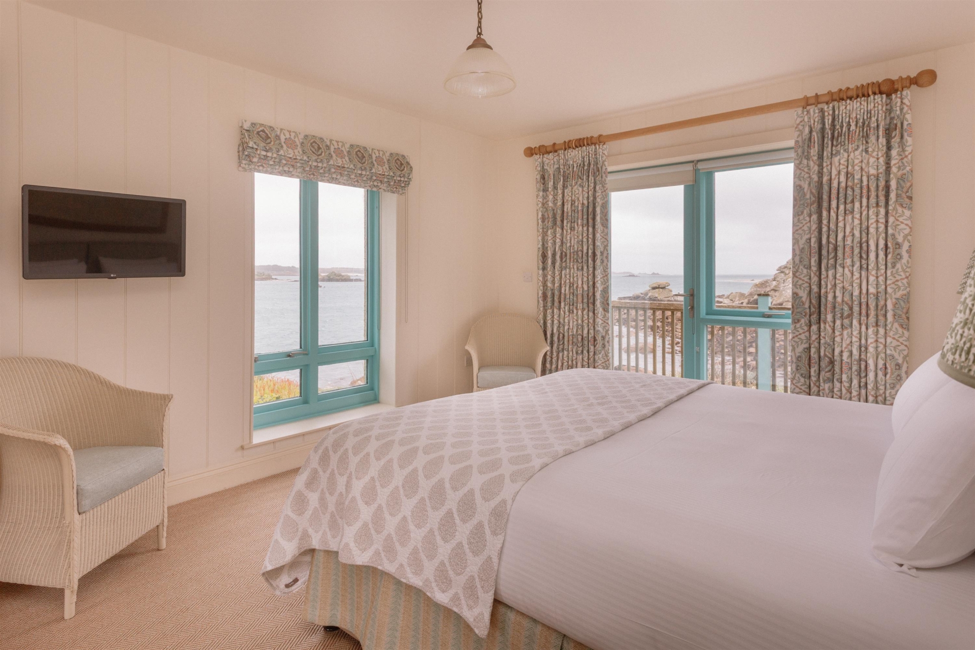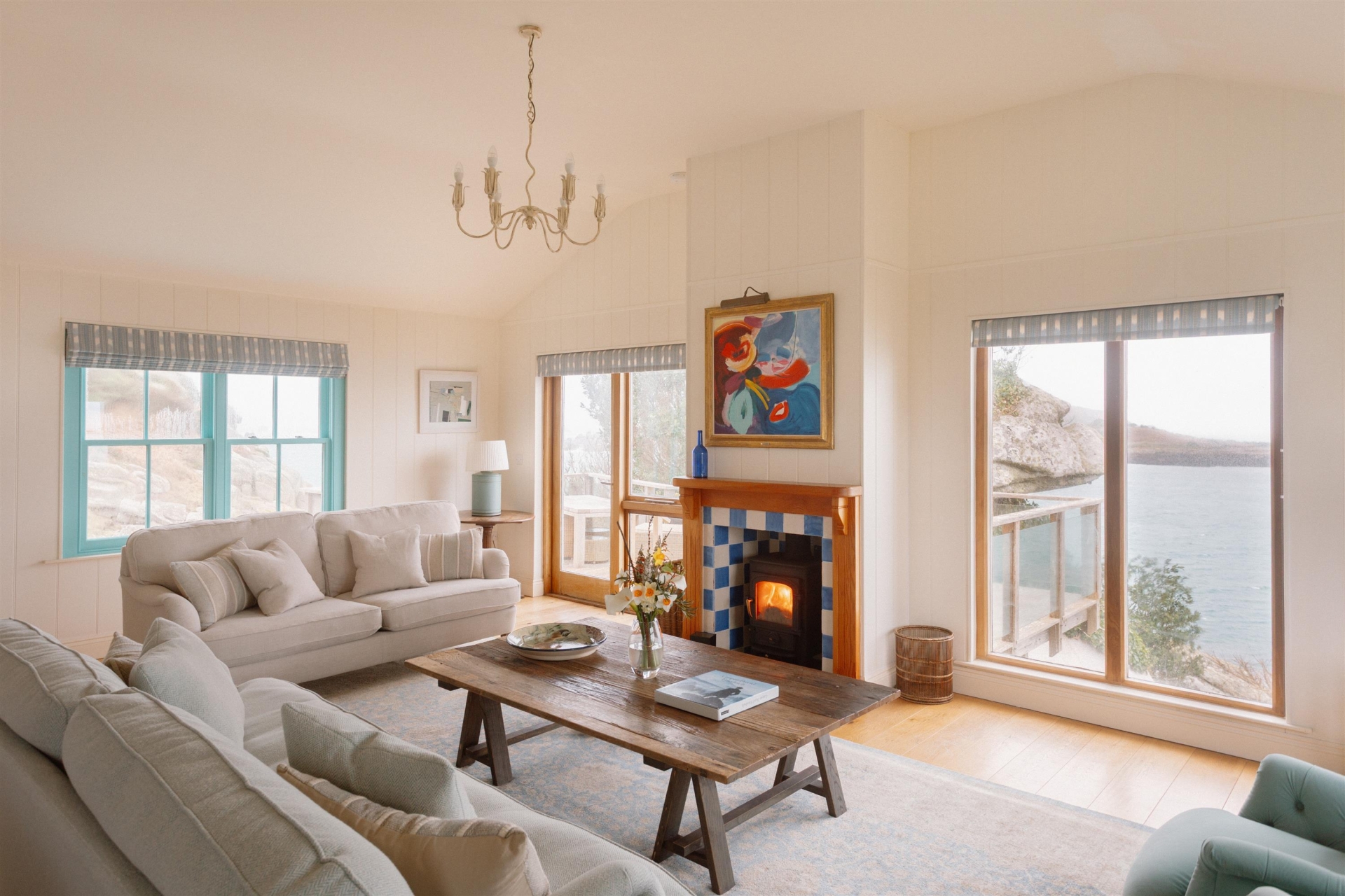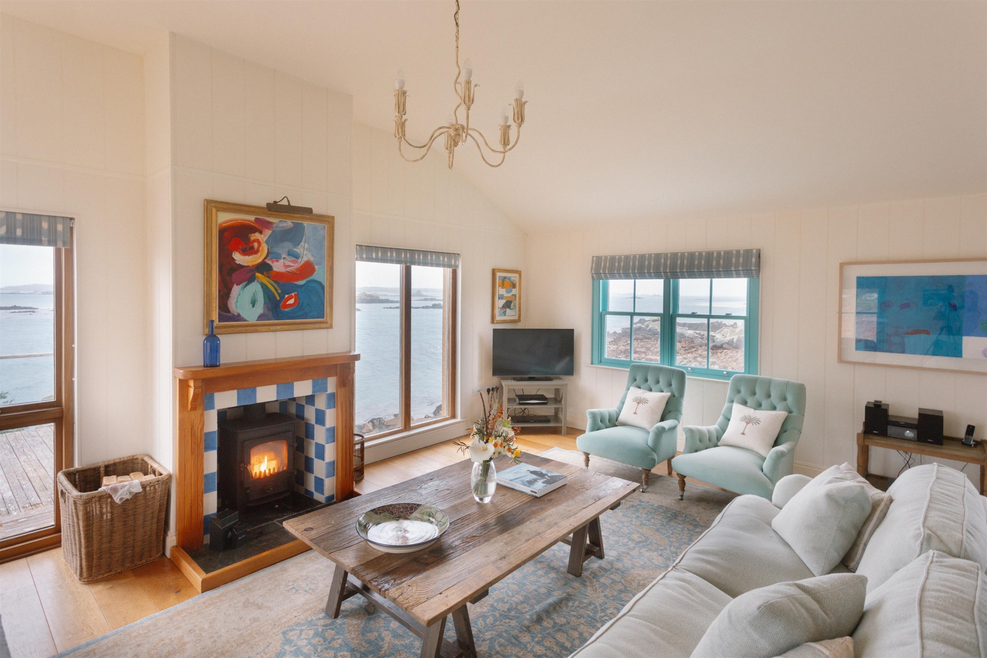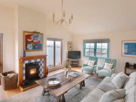 Upstairs boasts a glorious open-plan living space – relax in the enveloping sofas and devour mesmerising sea views through the picture windows.