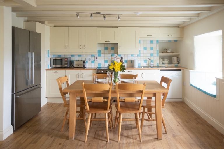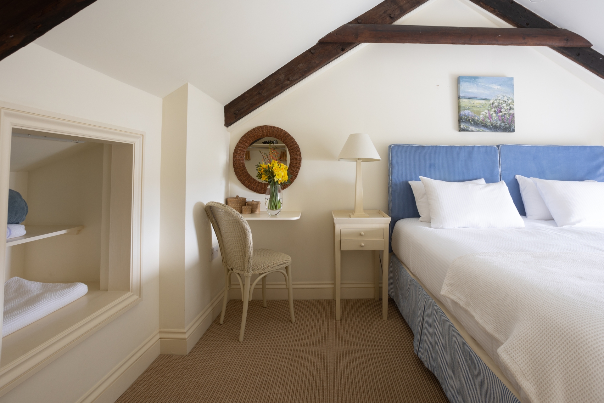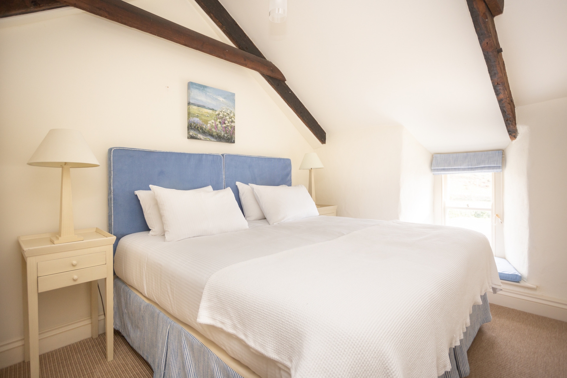 In the upstairs bedrooms, the exposed beams and sloping ceilings evoke fisherman's tales, and outside the sun terrace beckons you to savour the late afternoon light.
