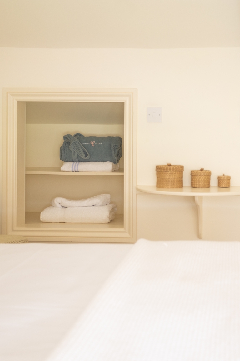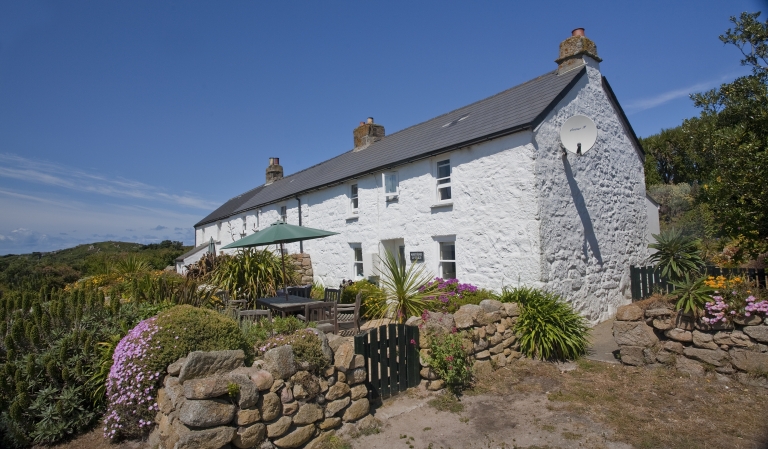 North End stands in a whitewashed line amongst its two sister cottages, nestled on the hillside at New Grimsby and gazing out towards Samson.