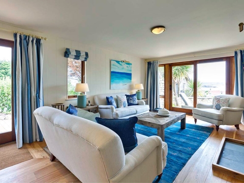 Decked out in stylish maritime hues, the light living space welcomes you to explore the cottage. The sociable, open-plan design prompts holiday fun, and three sizeable bedrooms provide space for peaceful retreats.