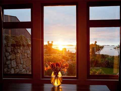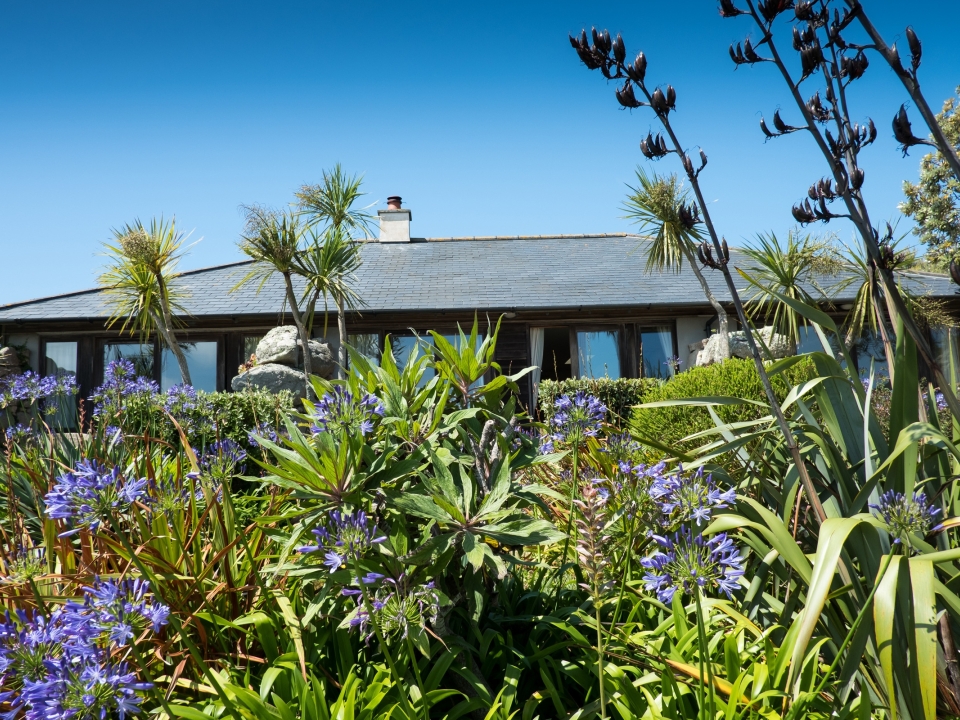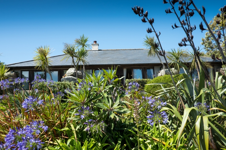 Built into the hillside overlooking the Ruin Beach Café, Rockpool is surrounded by flowers and is mere steps from Old Grimsby beach.