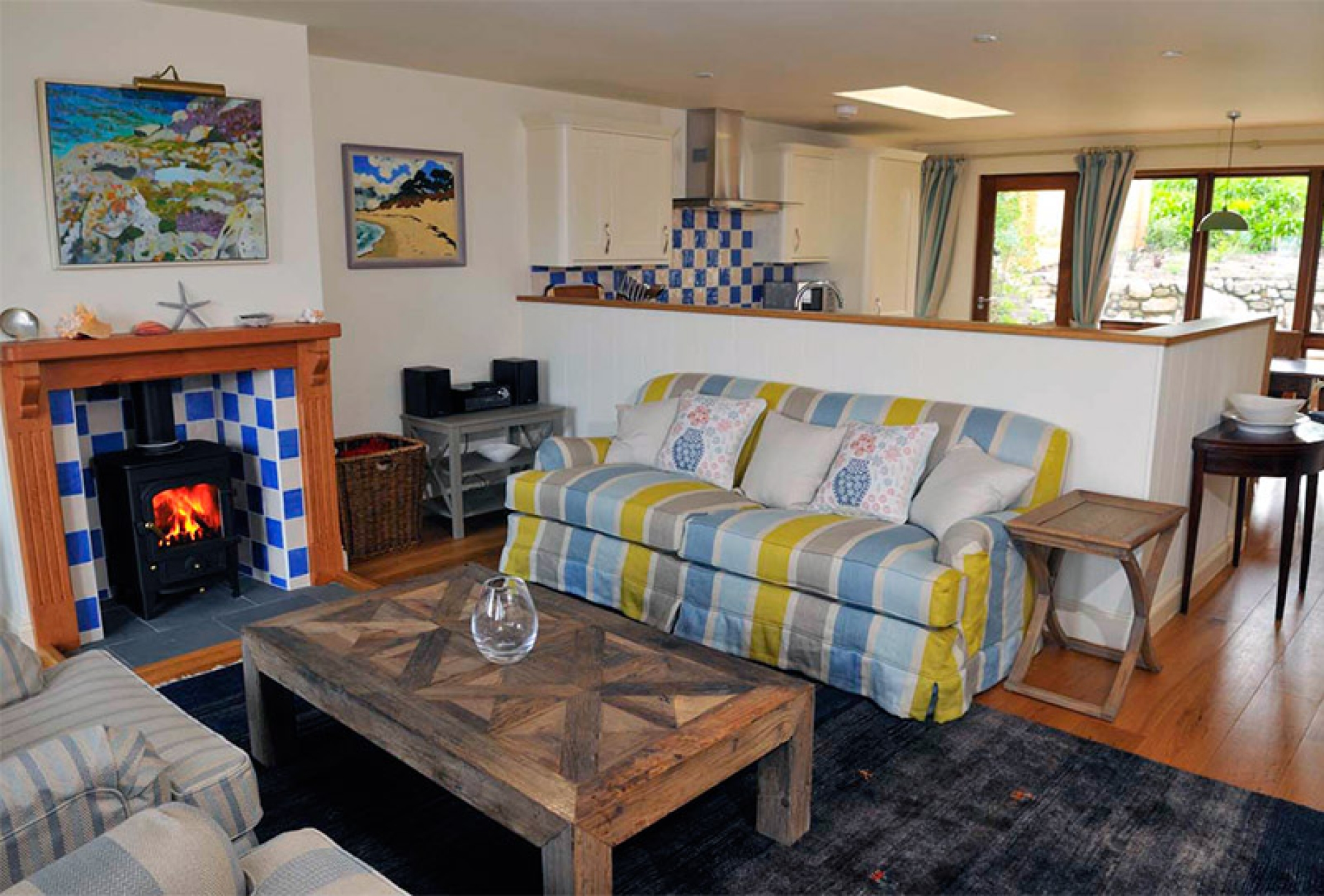 The heart of the cottage consists of an open plan kitchen, living and dining space enclosed between two walls of picture windows allowing light to cascade in. Watch morning sunrises from the lounge or cosy down with the log burner roaring during colder times of year.
