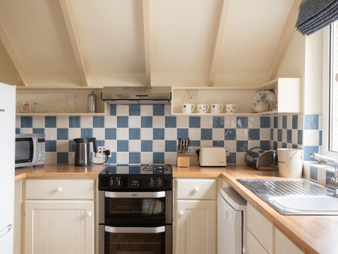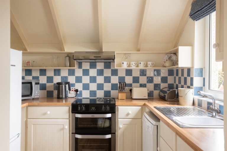 Tucked away amongst our Abbey Farm cottages, Snipe consists of an open-plan kitchen and living space, and a light double bedroom set on a mezzanine above the lounge. The bedroom window frames the captivating scene of the Great Pool and its surrounding reedbeds.