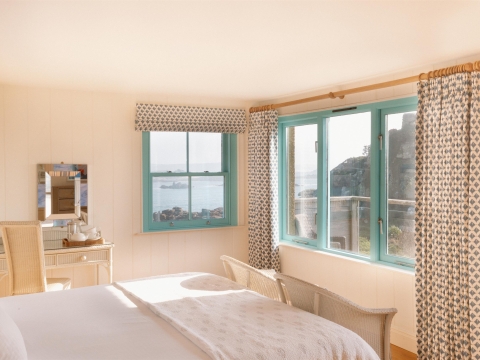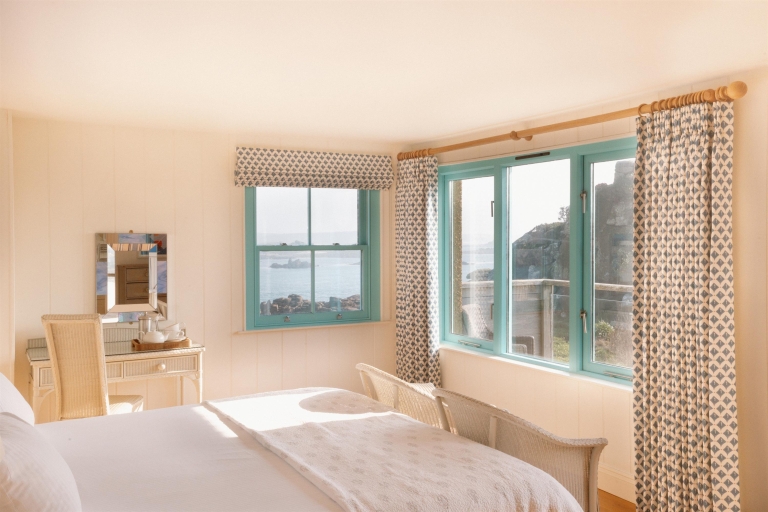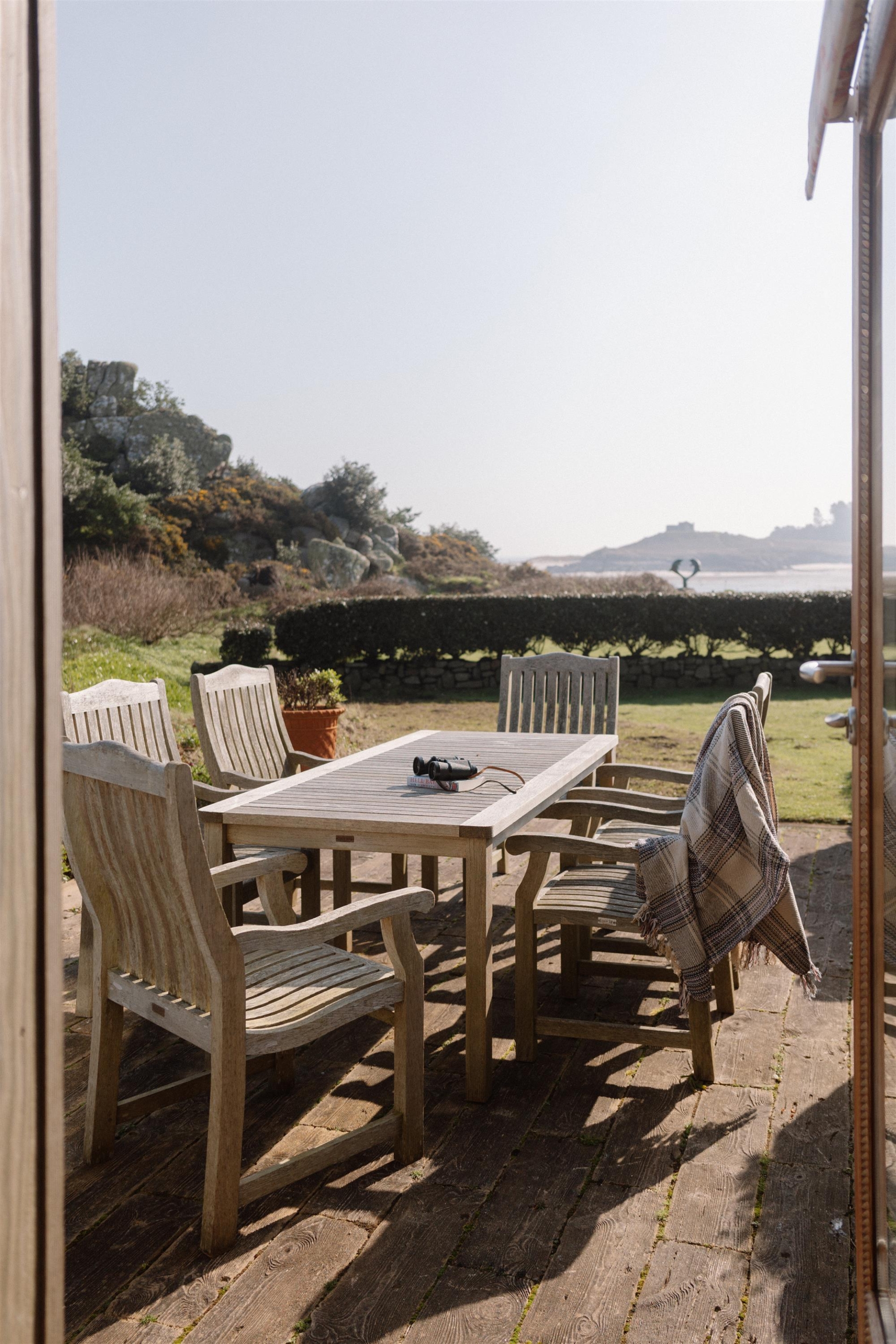 Outside, doors open onto a raised terrace, the view widening as you step out - a place for early coffee in the morning light, or long, unhurried meals looking out to sea. The Sea Garden lawns and shoreline lie just beyond, with the Ruin Beach Café and spa facilities only moments away.
